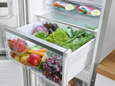 Das geräumige VitaFresh XXL System bietet bei einer Temperatur von 0° ideale Lagerbedingungen, um Fleisch und Fisch kühl sowie Gemüse und Obst knackig zu halten.